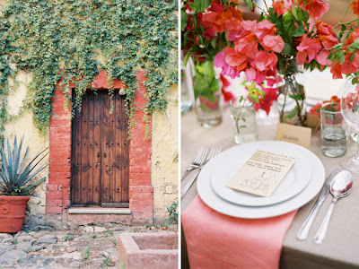 Jose Villa workshops last year and shot this wedding inspiration in a beautiful rustic adobe setting. It's a perfect collection of striking magenta and romantic soft pink coupled with earthy brown and red tones mimicking the gorgeous setting sun on a hot summer night. Ooh, I need to go on vacation...